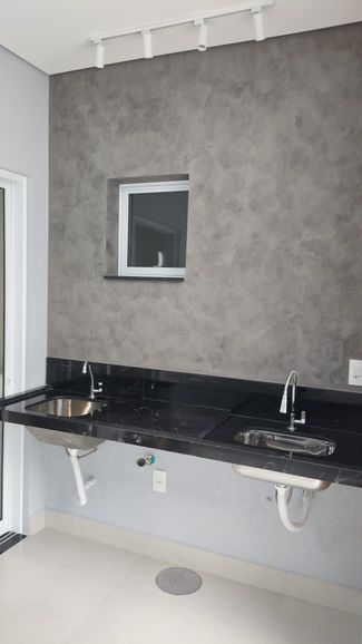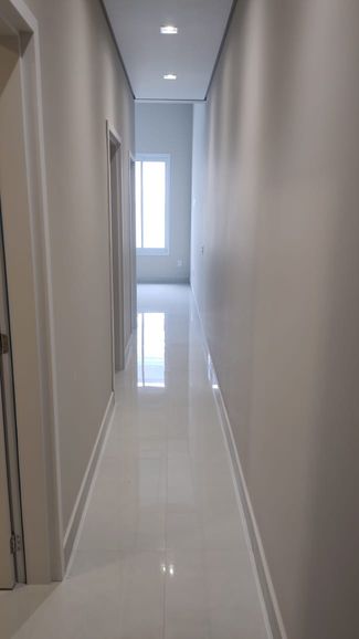 Acabamento de alto padrão com porcelanato em todos os ambientes, pintura externa em textura projetada e cimento queimado, esquadrias em alumínio e infraestrutura pronta para ar-condicionado.