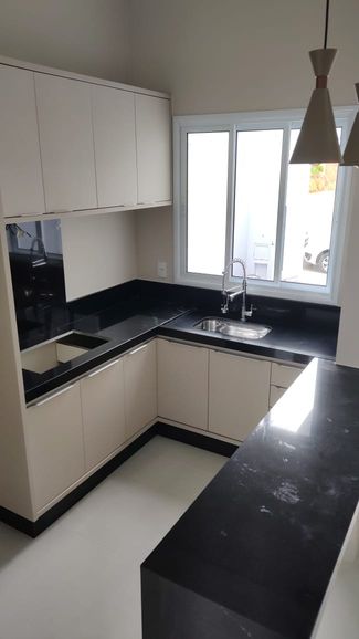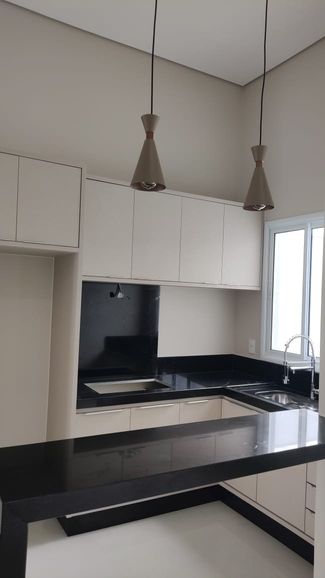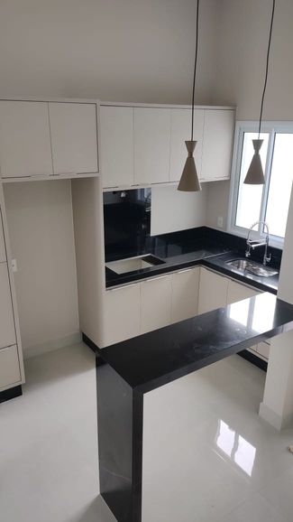 ✔ Cozinha com pé-direito alto, armários planejados e cooktop