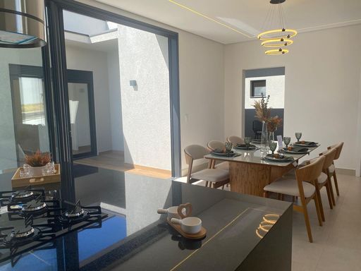 Excelente casa térrea localizada em terreno de esquina com 300m², oferecendo 204m² de área construída, com projeto moderno, funcional e acabamento de alto padrão.