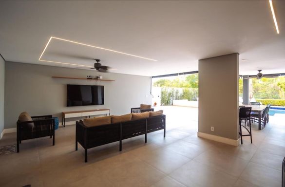 Sala de estar e jantar integradas, proporcionando amplitude e iluminação natural